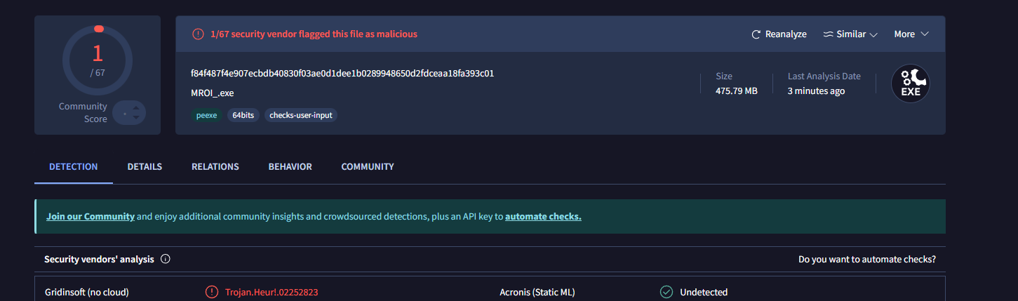 So... Could someone please explain this to me? How is this even allowed on Itch.io? Having a download option for a single .EXE file is really sus, man. I found your game on twitter and it looked so good but aint noway i'm running ts. This was a VirusTotal analysis btw: https://www.virustotal.com/gui/file/f84f487f4e907ecbdb40830f03ae0d1dee1b02899486...